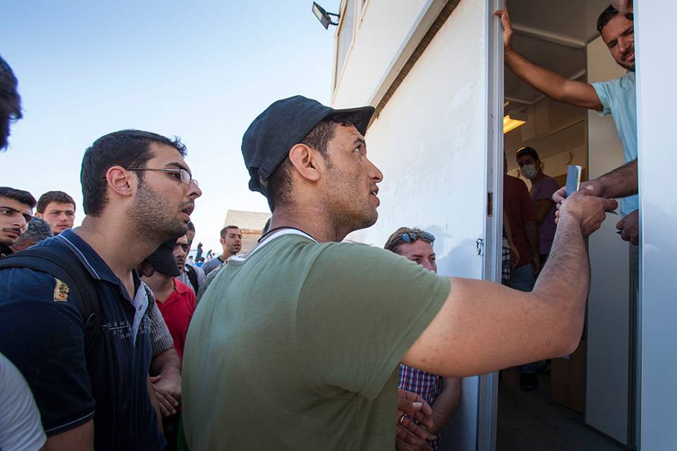 Op het land aangekomen controleren de Grieken de documenten van de migranten, start de registratie en is er een medische controle.