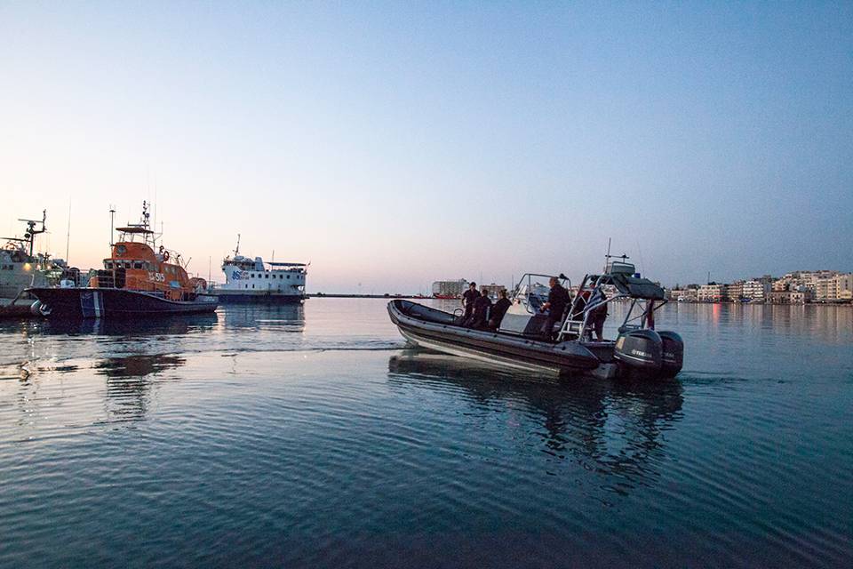 De RHIB vertrekt in de vroege ochtend vanuit de haven in Chios. Vlak ervoor krijgen de bemanningsleden in een briefing met de Griekse kustwacht te horen wat zij die dag kunnen verwachten.