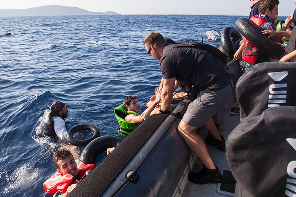 Migranten trekken van de Turkse kust naar Griekenland. Een oversteek van ruim 7 kilometer. Vaak treffen de bemanningsleden hen aan in overvolle bootjes.