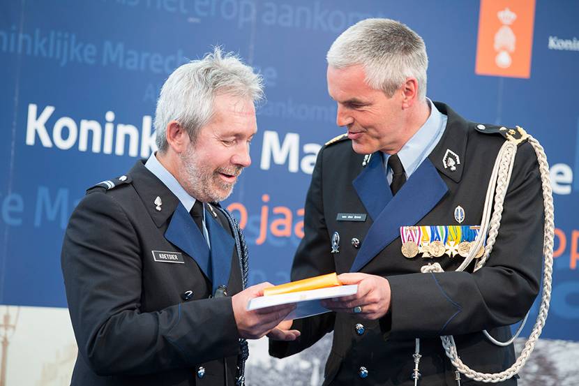 Vakmanschap en samenwerking. Op die 2 punten zal Van den Brink de komende jaren de focus leggen. "Niet dat het ons nu ontbreekt aan die kenmerken, maar op die vlakken onderscheidt de Marechaussee zich. We moeten ons versterken. We kunnen ons werk alleen goed doen als we intensief samenwerken. Samenwerken binnen onze eigen organisatie op alle niveaus, maar ook met de andere defensieonderdelen, onze ketenpartners en gezagsdragers. Ik vind het versterken van die banden van groot belang."