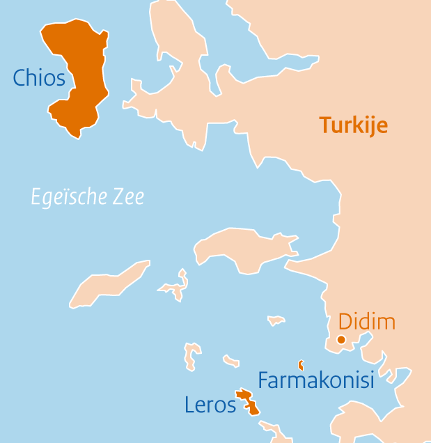 Op de kaart is Farmakonisi een kleine stip. Een stukje Griekse grond van nog geen 4 vierkante kilometer dicht onder de Turkse kust. Een eilandje waar doorgaans niemand op let, maar dat geldt niet voor opperwachtmeester Age. Farmakonisi is namelijk een belangrijke tussenstop voor vluchtelingen die vanuit het Turkse havenplaatsje Didim richting Europa varen. "Uiteindelijk komen deze mensen aan op het eiland Leros en komen ze bij mij terecht", zegt hij.