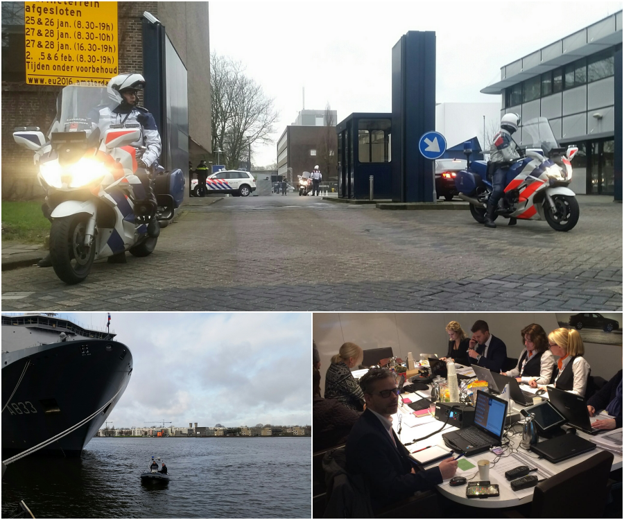 Tijdens het EU-voorzitterschap wordt een groot aantal ministeriële en ambtelijke vergaderingen gehouden op verschillende locaties, zoals het Marine Etablissement Amsterdam (MEA), het Scheepvaartmuseum, Schiphol, het Nationaal Militair Museum en Vliegbasis Eindhoven. De KMar voerde tussen Schiphol en de diverse locaties tientallen motorbegeleidingen uit in samenwerking met de Nationale Politie.