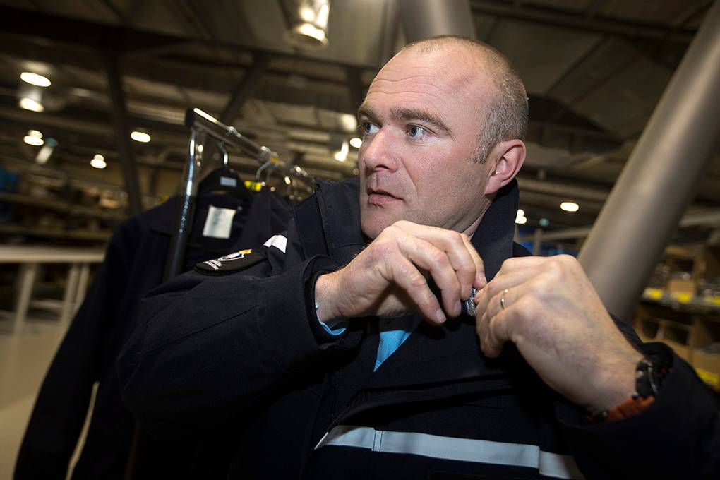 De gedaanteverwisseling is begonnen. 27 collega’s kregen onlangs op het KPU-bedrijf in Soesterberg als eerste het nieuwe operationele tenue uitgereikt. Eind 2016 moet de hele KMar met de kortere jas, comfortabele broek en lichtblauwe polo zijn uitgerust.