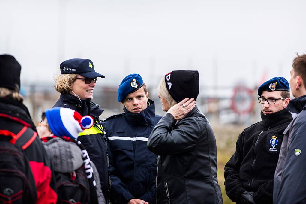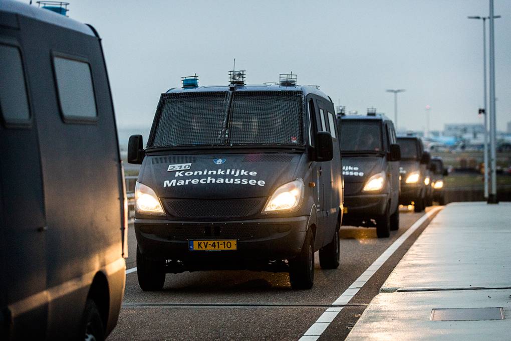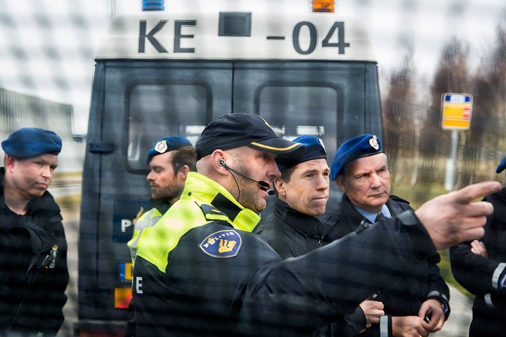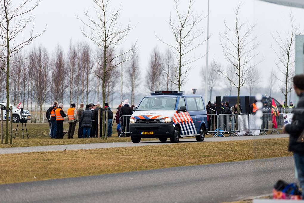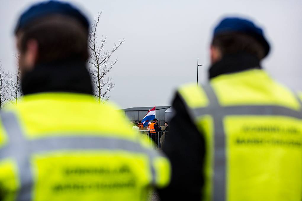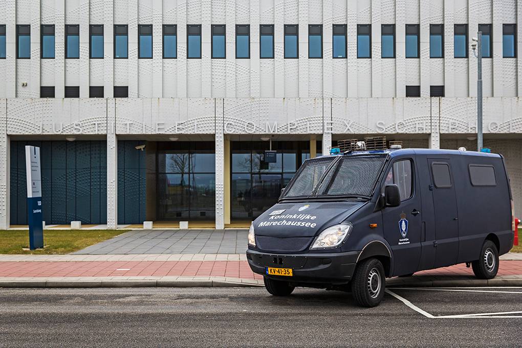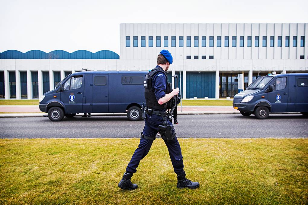 In de extra beveiligde rechtzaal van het Justitieel Complex Schiphol (JCS) vond op 18 maart de regiezitting van het proces tegen PVV-leider Geert Wilders plaats. Omdat het JCS binnen het werkgebied van de Koninklijke Marechaussee valt, is het de taak van de KMar om bijvoorbeeld demonstraties bij het justitieel complex in goede banen te leiden en de openbare orde te handhaven. Actiegroep Pegida kondigde een demonstratie aan. Fotograaf Valerie Kuypers ging mee met de Marechaussee.