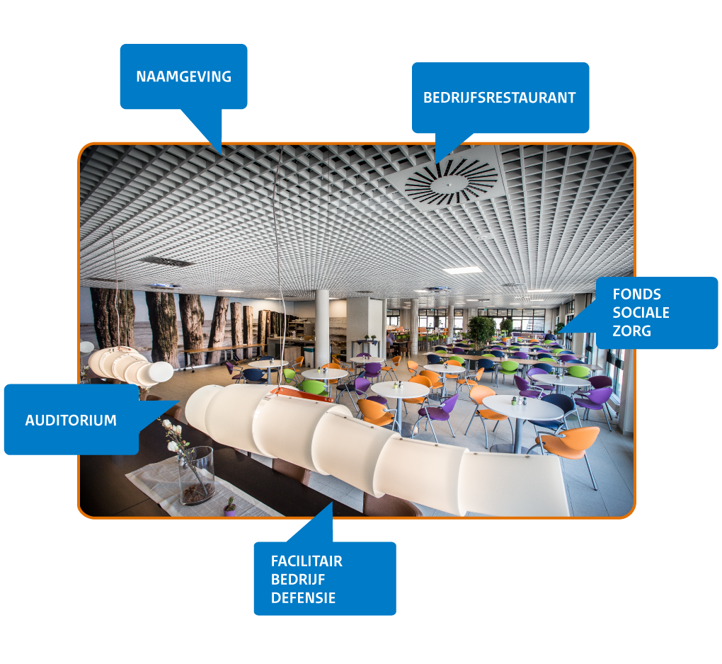 Facilitair Bedrijf Defensie: Servicebalie voor de bewoners van de Koning Willem III-kazerne. "In vergelijking met ons vorige gebouw zitten we nu veel dichter bij onze klanten", vertelt hoofd Servicebalie Marjolein Bijlhout. "Als je het nieuwe KEK-gebouw binnenkomt zie je ons direct en kun je snel een aanvraag voor een artikel of dienst indienen."