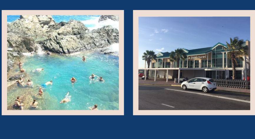 Links: Natural Pool. || Rechts: Reina Beatrix Airport.