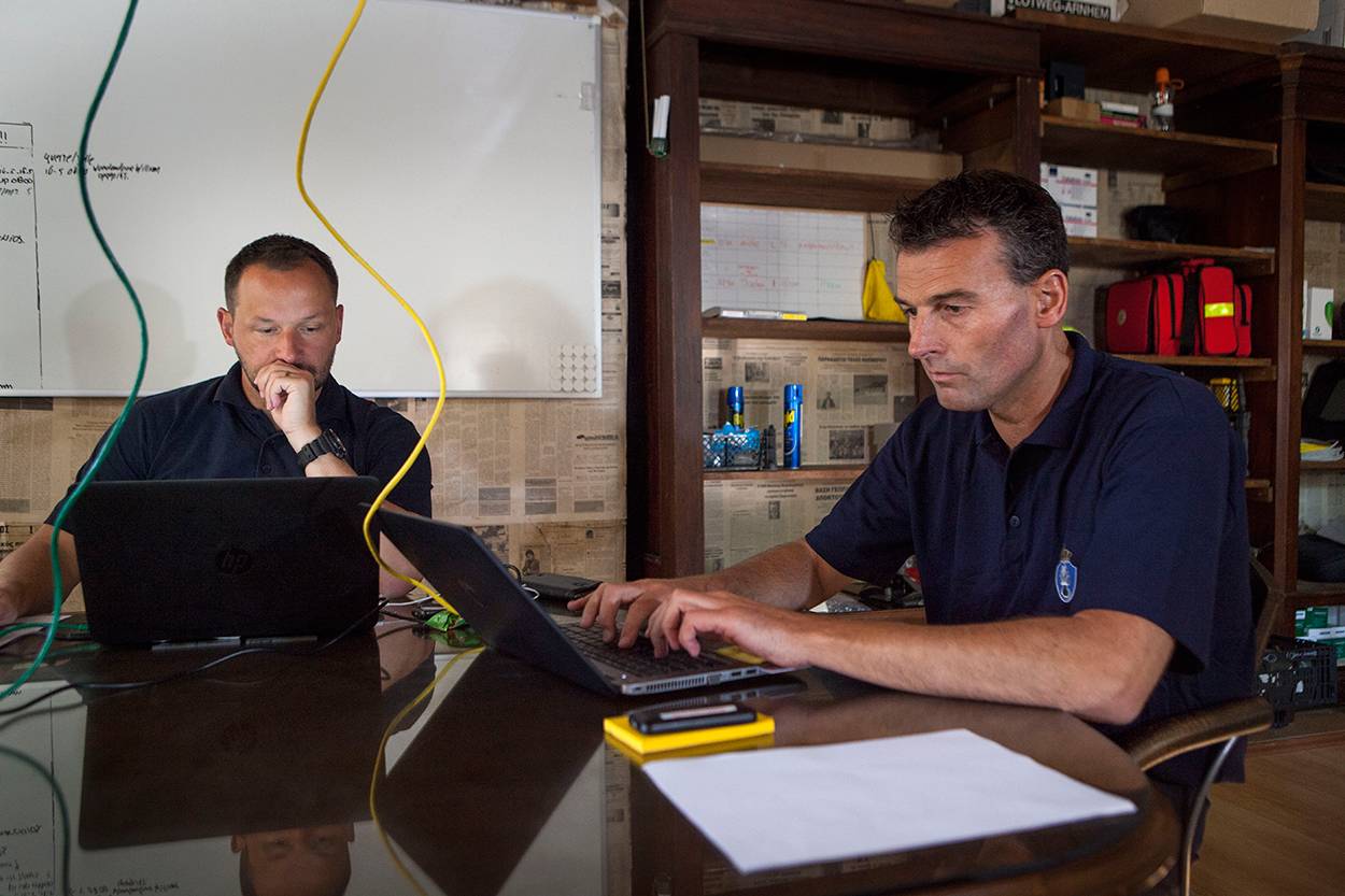 Zijn er wel documenten, dan komen ze onder de microscoop van wachtmeester-1 Jochem. Hij werkt samen met een Duitse collega; ze vullen elkaar aan en maken gebruik van elkaars ervaring. "De docu-box die Frontex ter beschikking stelt, werkt volgens hetzelfde principe als de apparatuur die we op de brigade Waddengebied gebruiken. Documenten in het Arabisch, die we thuis niet zo vaak zien, controleren we met de Edison-database op de Ipad, en dat werkt perfect. Maar eigenlijk maakt het niet zoveel uit wat voor soort document je aangeboden krijgt: de opbouw en kenmerken van echtheid verschillen niet zoveel."