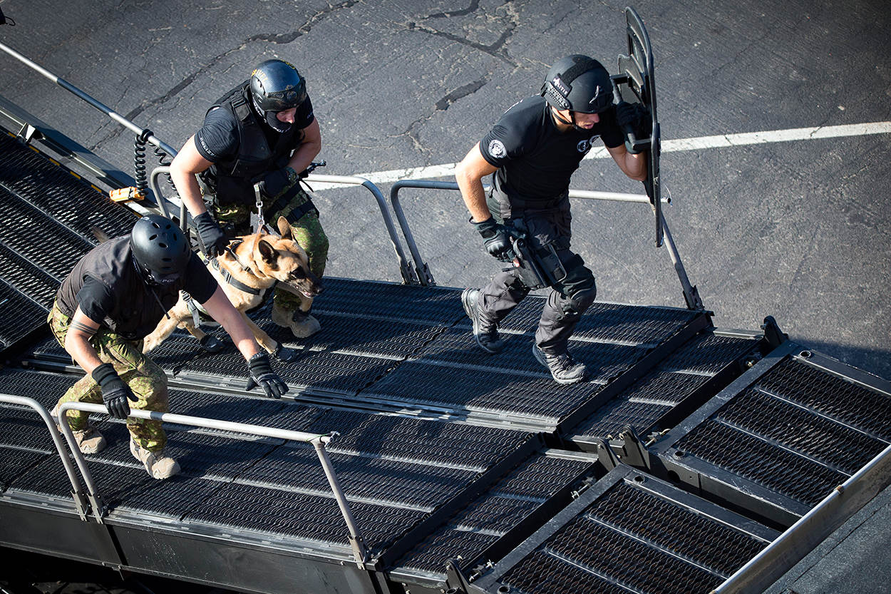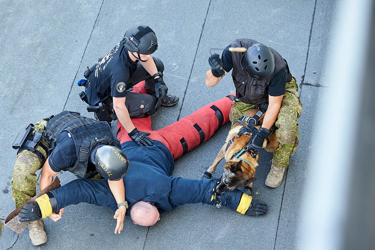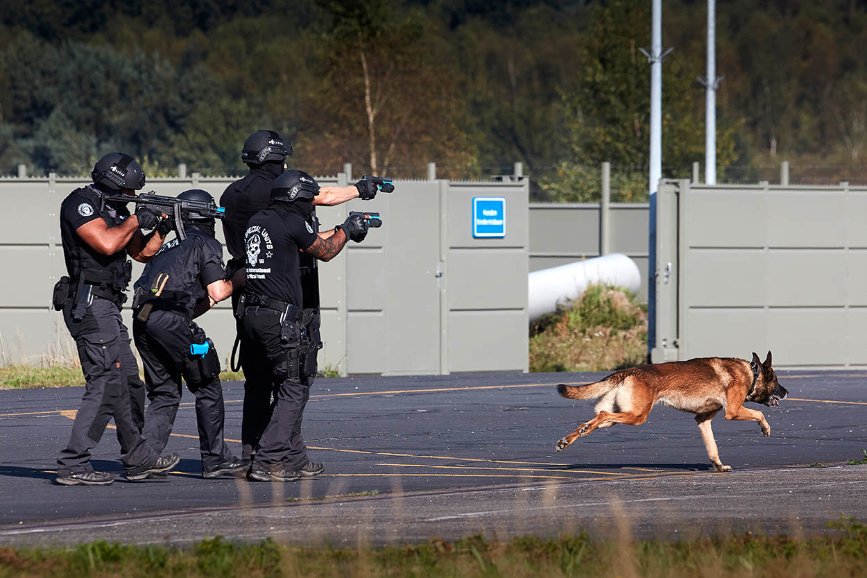 In de internationale wereld van speciale eenheden worden honden steeds vaker ingezet als 'biologische robot'. Dirigeerhonden gaan met een camera op hun kop en een portofoon om de hals op verkenning uit. Dat doen ze vaak voordat er aanvalshonden aan te pas komen. Onlangs oefende de Brigade Speciale Beveiligingsopdrachten (BSB) samen met de Landelijke Eenheid van de politie en de Dienst Speciale Interventies met een aantal internationale collega's de procedures, het gebruik van materialen en de inzet van de honden.