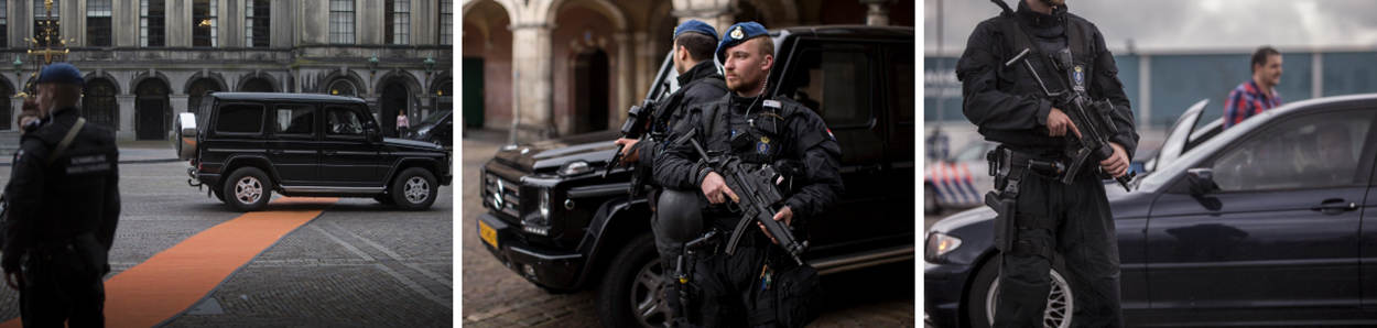 Voor de forenzen die van Den Haag Centraal richting de binnenstad wandelen, zijn ze inmiddels een bekend fenomeen: de mannen en vrouwen van de Hoog Risico Beveiliging (HRB). Met een waakzame blik houden ze de omgeving en mensenstroom in de gaten, klaar om in te grijpen mocht een terrorist het in zijn hoofd halen de ministeries van Binnenlandse Zaken en Veiligheid en Justitie aan te vallen.