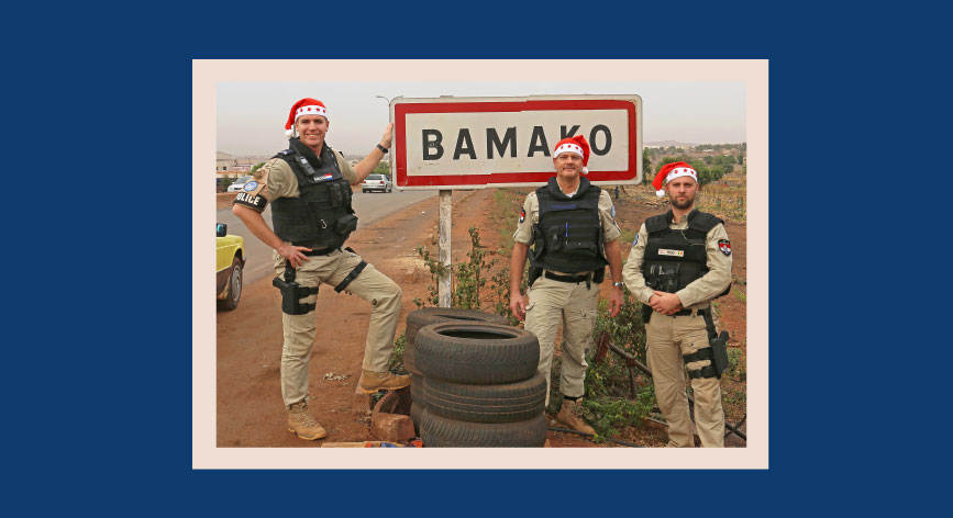 "Dit is voor ons (Mark en Tom) de eerste keer dat we de feestdagen en dus ook de kerst niet met onze kinderen kunnen doorbrengen. Een apart gevoel, wat we nog lastig kunnen plaatsen. Als je zo lang van huis bent, besef je pas echt de waarde van het samenzijn met familie en vrienden. In Gao wordt er een kerstdiner georganiseerd en is er een kerstbijeenkomst onder leiding van de geestelijk verzorger. In Bamako kunnen Elpida en Harm aanschuiven bij een kerstdiner en hebben ze een kerstbijeenkomst bij de inlichtingencollega's van All Sources Information Fusion Unit (ASIFU). Vanuit Mali wensen wij alle collega's en hun families fijne feestdagen en een voorspoedig 2017."