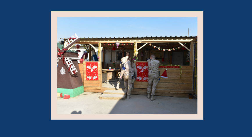 "Wij vieren de feestdagen dit jaar tussen de collega's van de Landmacht en de Marine. We hebben goed contact met deze collega's en zullen dan ook een aantal festiviteiten samen organiseren. Zo zal er een kerstbrunch zijn en volgt er op oudejaarsavond een internationaal feest in het Nederlandse kamp. Er is hier wel sprake van een bepaalde kerstsfeer. Ook in de regio hier. Er is een grote christelijke wijk en in de shopping malls schenken ze ook aandacht aan de kerst.