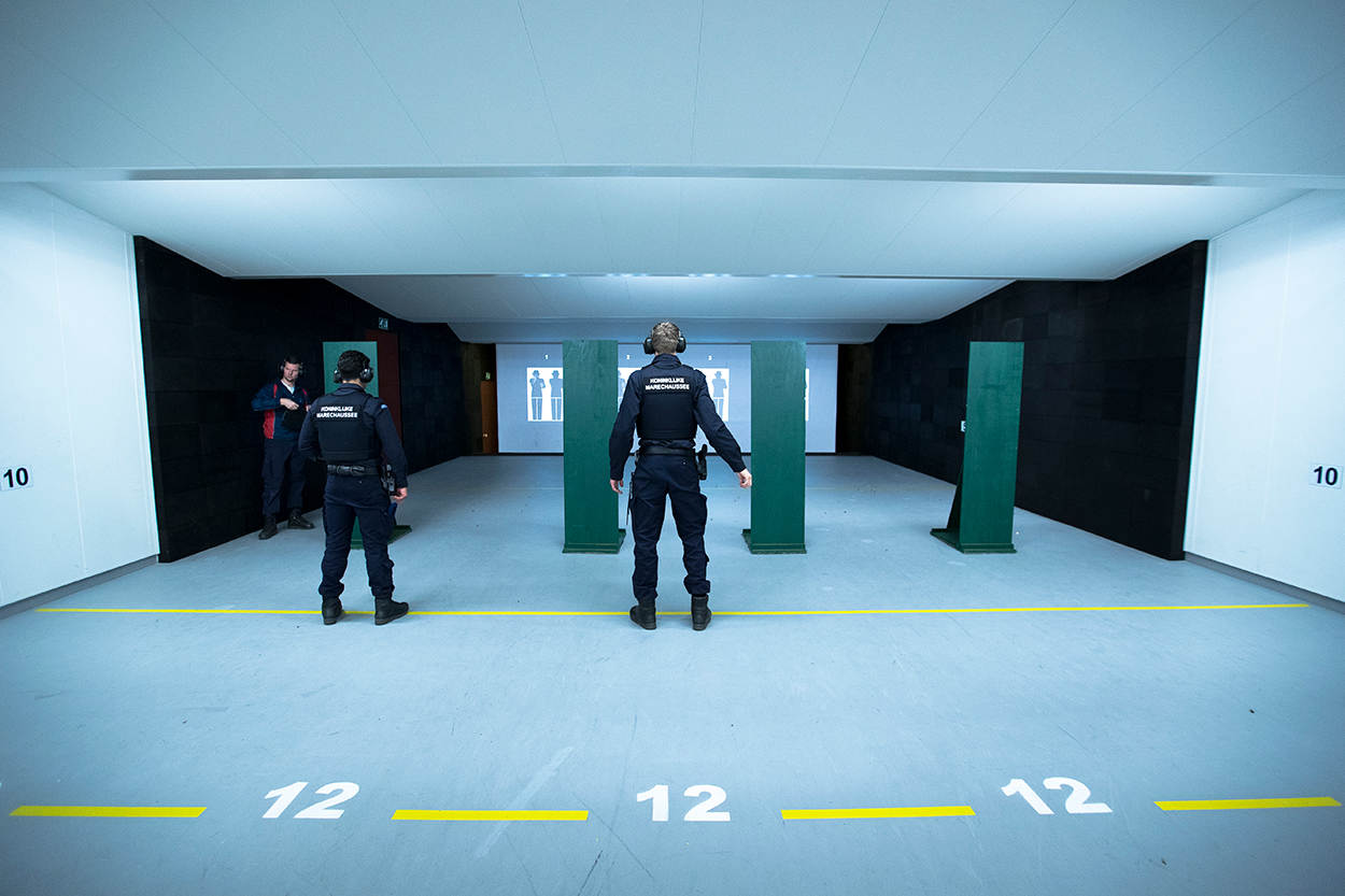 Zowel de Koning Willem III-kazerne in Apeldoorn als de Koningin Máximakazerne op een steenworp afstand van Schiphol, is 2 gloednieuwe schietfaciliteiten rijker. KMar-collega's en leerlingen schieten in een ultramoderne omgeving, omringd door hightech apparatuur. Zo heeft de schietschijf hier plaatsgemaakt voor projecties en met simulatoren en haarscherpe video's worden situaties levensecht nagespeeld.