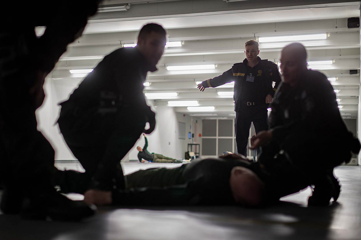 In de IBT-straat op het Opleidings-, Trainings en Kenniscentrum KMar wordt geoefend met simunition. Een Spanjaard is de verdachte. Hij wordt onder schot gehouden door een Slowaak en een Maltees. Een Belg gaat over tot aanhouding. Een internationaal samenspel.