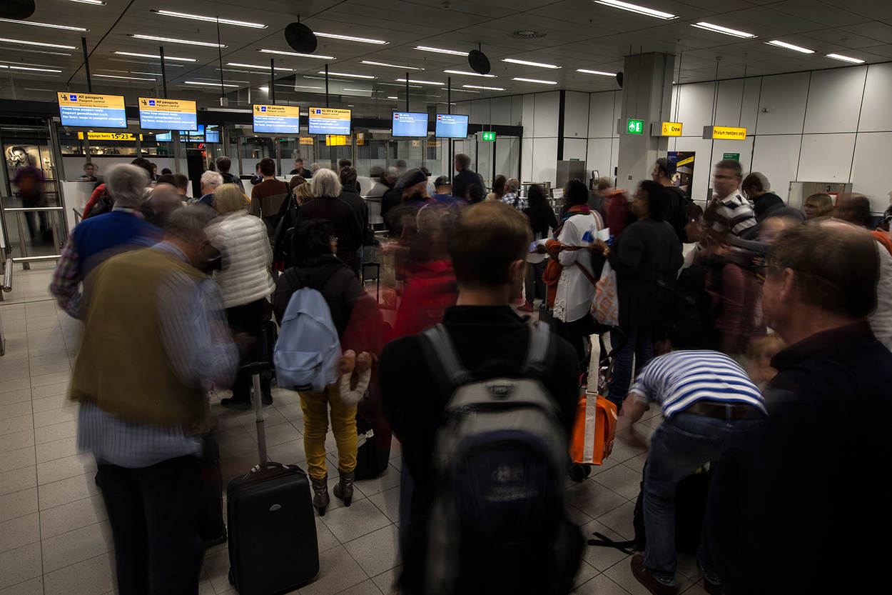 De drukte op de luchthavens en met name op Schiphol blijft onverminderd hoog.