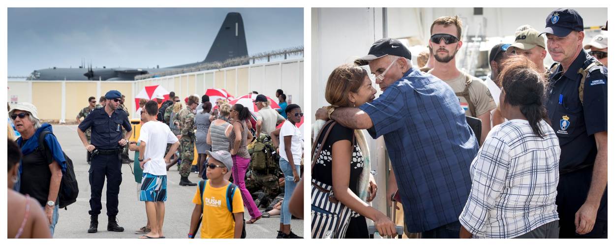 Na de orkaan richt de focus van Defensie zich primair op het repatriëren van gezinsleden van militairen. Dan hoeven zij namelijk niet voor hen te zorgen en kunnen ze bijdragen aan de noodhulp. Het vliegen naar Curaçao lukte op vrijdag. Handhaving van de openbare orde is wat op Sint-Maarten als eerste moest gebeuren. Mensen zijn ontredderd, hebben alles verloren, hun basale levensbehoeften. Daardoor gaan ze op pad. Plunderingen waren in het begin aan de orde van de dag. Naarmate de tijd verstrijkt zie je dat de politie die wij als KMar ondersteunen, daarop meer grip krijgt. Vanuit de KMar-brigade, vanaf de andere eilanden hebben we direct alle capaciteit ingezet en extra mensen ingebracht ter versterking van het team op Sint-Maarten. De democratische rechtsorde moet weer hersteld worden. Daaraan dragen wij bij.