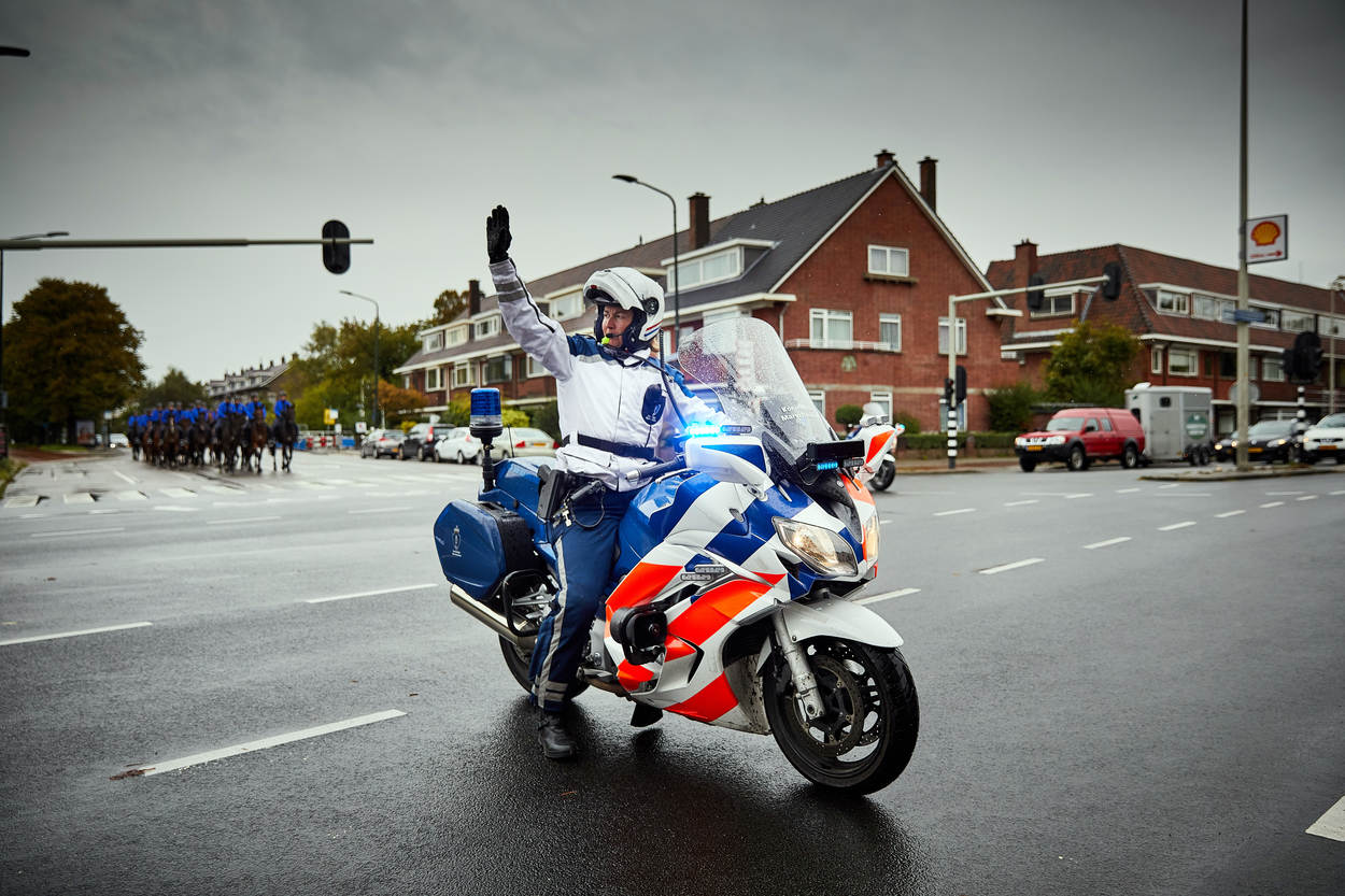 Op zondag begeleiden Edu en Pien het Bereden Ere-Escorte van de Koninklijke Marechaussee van Duindigt naar de Koninklijke Stallen voor de generale repetitie. Voorbijgangers wachten over het algemeen netjes op de bestuurders en hun gevolg, maar soms moet het duo toch ingrijpen. Zo fluit Edu een ongeduldige automobilist terug die een afgezette weg in wil slaan. “Er komen paarden aan! Ik zei: wachten!” En eerder maande Pien een oudere man een briefje achter te laten bij de auto voor hem, die hij net had geraakt. “We leiden niet alleen het verkeer in goede banen, maar we zijn ondertussen natuurlijk ook opsporingsambtenaar”, verduidelijkt Edu zijn takenpakket.