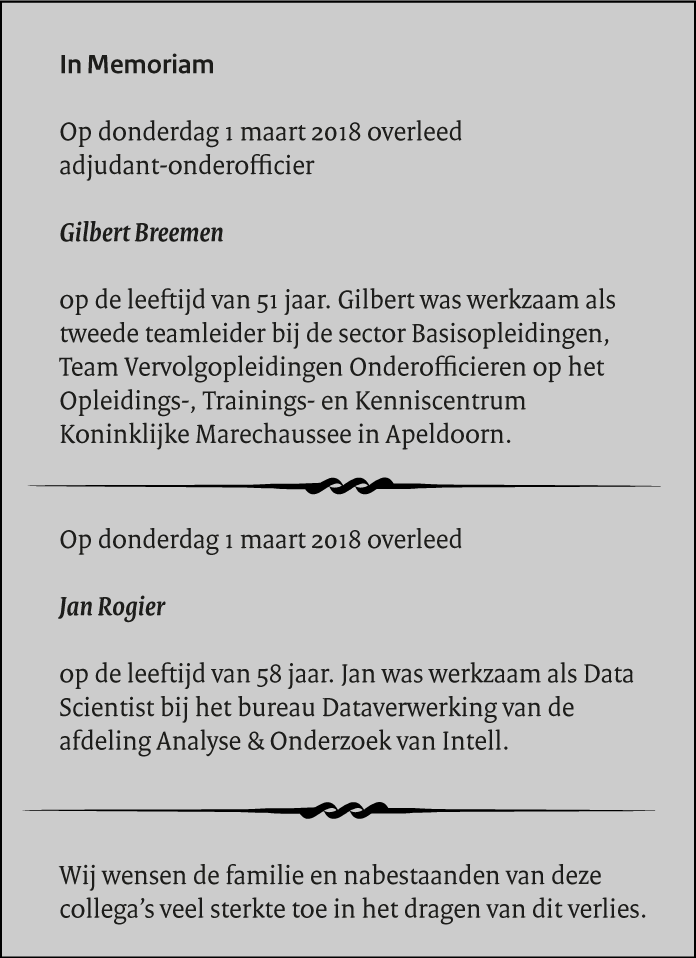 Brigadegeneraal Egbers en burgemeester Buijs-Glaudemans van de gemeente Oss hebben deze week bloemstukken gelegd op de graven van wachtmeester Geerard Hoekman en opperwachtmeester Arend Mintjes. Deze 2 marechaussees hebben een belangrijke rol gespeeld bij de aanpak van de criminaliteit rond Oss in de 19e en 20e eeuw.