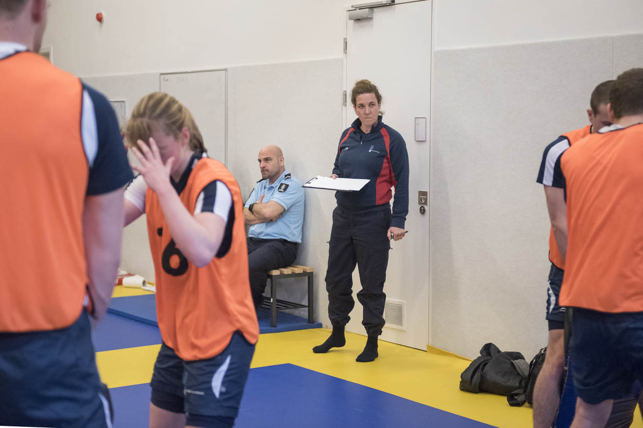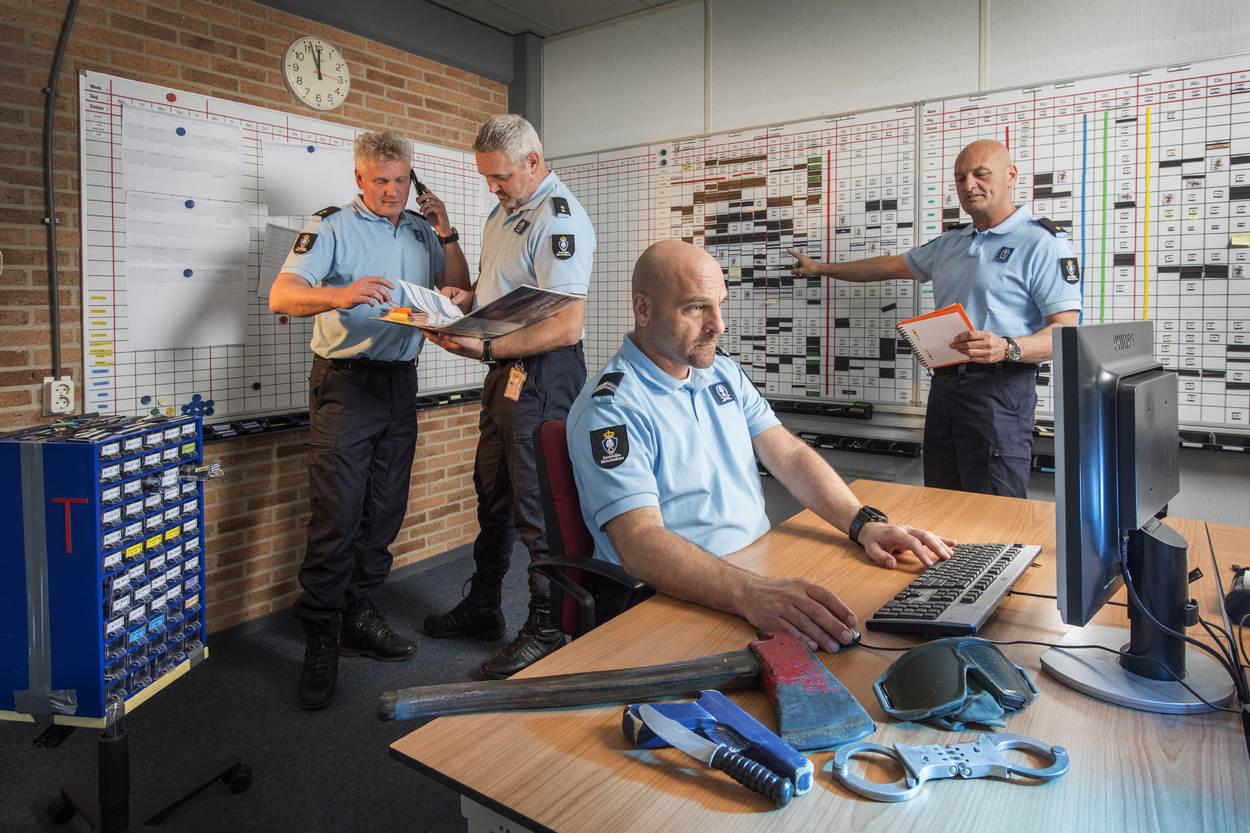 Een plastic bijl, neppaspoorten en handboeien. Bij Bureau Examinering (BEX) in Apeldoorn liggen allerlei attributen klaar voor het afnemen van toetsen. Aan de muur van het kantoor van kapitein John, hoofd BEX, hangt zelfs een kettingzaag. Maar dat is meer een geintje. “Je moet bij ons met goede argumenten komen, anders zwaait er wat”, grapt de officier.