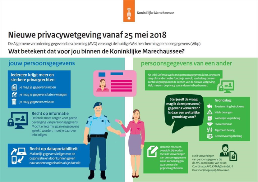 Twijfel je of iets wel geborgd is, heb je een klacht, ken je een mogelijk datalek, verzamel je persoonsgegevens maar staat dit niet geregistreerd of heb je vragen over de AVG? Neem dan contact op met de AVG-coördinator via coordinator.avg.kmar@mindef.nl of met je P&O-adviseur. Ook op de privacy-pagina op Defensie.nl kun je veel informatie vinden.