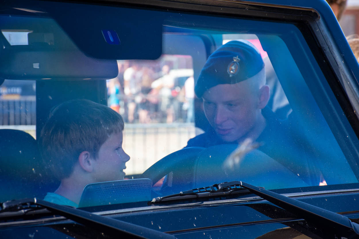 De jeugd was vooral geïnteresseerd in wat de HRB allemaal doet. Daarop konden de aanwezige collega’s prima antwoord geven. Een veelgehoorde vraag van met name volwassenen was hoe zwaar al het materieel weegt dat een HRB’er bij zich draagt. Daarom mocht jong en oud in het bijzijn van een KMar-collega een wapen vasthouden, een schild vastpakken of een kogelwerend vest omdoen. Ook 2 gepantserde voertuigen en de Volkswagen Amarok werden uitvoerig bekeken.