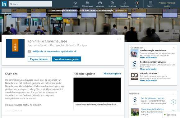 Collega’s kunnen nu op LinkedIn aangeven dat ze bij de Koninklijke Marechaussee werken. De KMar heeft sinds kort namelijk een eigen bedrijfspagina.