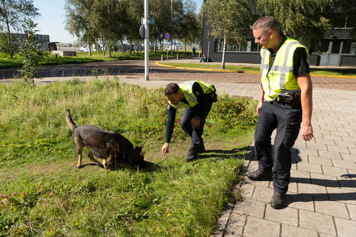 “Maar dat is het niet voor de honden”, zegt surveillancehondengeleider opperwachtmeester Frank serieus. De hond die doorgaans waakzaam en keurig naast hem loopt, kan op commando zijn focus verleggen en een verdachte overmeesteren. “Eigenlijk zijn het vooral heel sociale honden, die juist rustig blijven in het publieke domein. Samen surveilleren we op plekken met een verhoogd risico op onrust. De hond gebruik ik als laatste middel om in te grijpen.”
