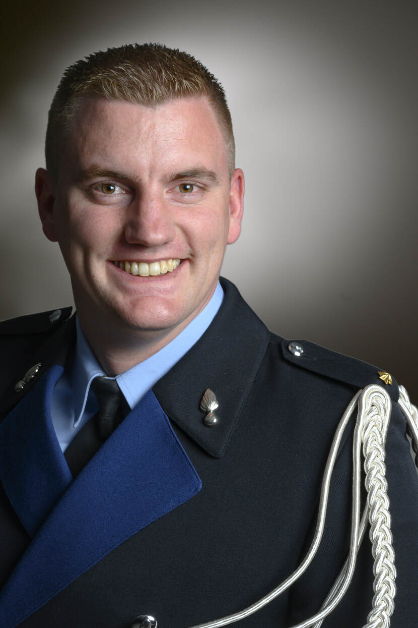 “Ik kom oorspronkelijk uit de evenementenbranche. Na mijn studie ‘technisch productmanager’ heb ik met verschillende bands door Europa getoerd en voor festivals in het binnen- en buitenland gewerkt. Ik had het absoluut nog naar mijn zin, maar zag mezelf dat niet tot mijn pensioen doen. Defensie trok mij altijd al en zo kwam ik bij de functie voor logistiek officier binnen de Marechaussee terecht. Perfect. De opleiding was… Bijzonder. Je komt als burger even in een totaal andere wereld terecht, maar ik heb echt een supertijd gehad. Ik ga aan de slag als hoofd logistiek bij een brigade van het LTC. Daar verwacht ik in eerste instantie veel te leren en uiteindelijk vanuit mijn achtergrondkennis ook zeker stappen te kunnen maken.”