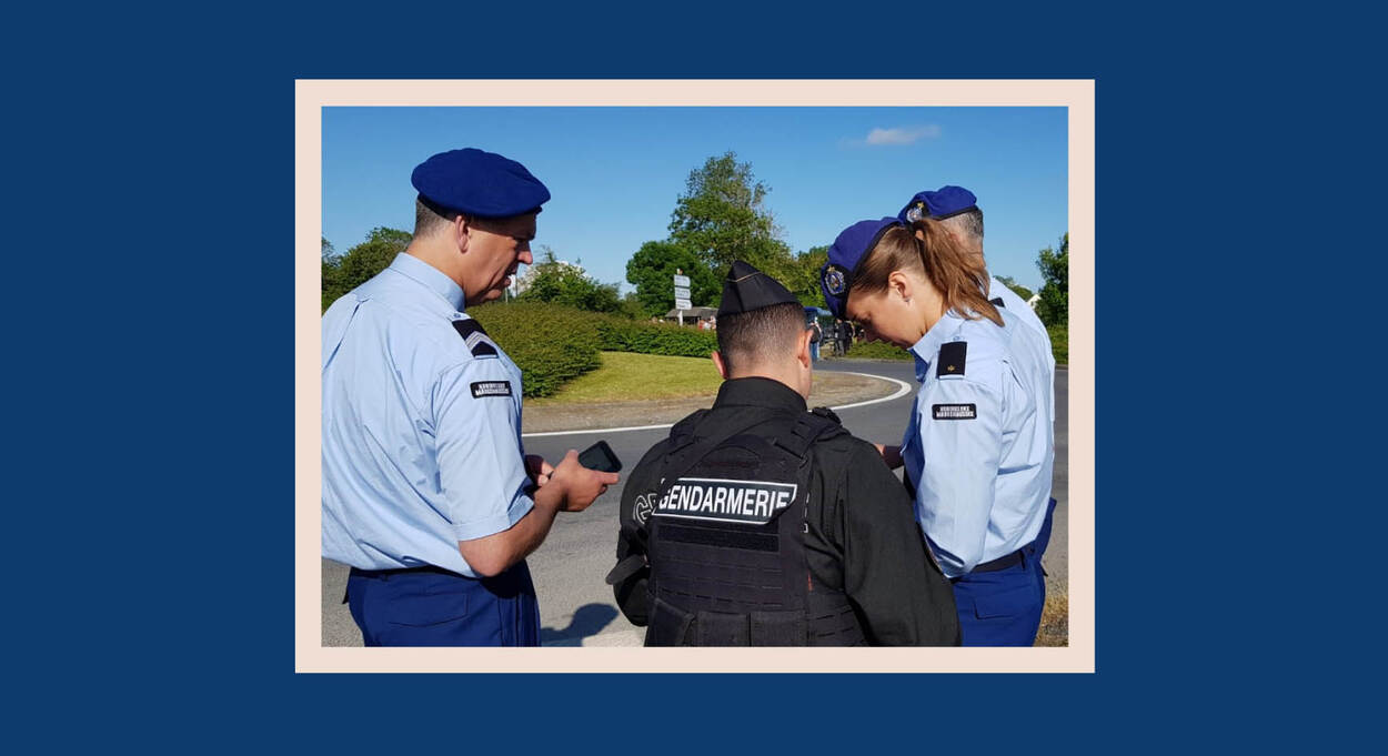 Overleggen met de gendarmerie om de weg vrij te maken voor de mars.