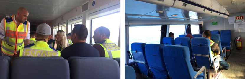 Deze training vindt elke maand plaats, met escorts uit allerlei lidstaten. We leren hen bijvoorbeeld hoe ze vreemdelingen begeleiden op een veerboot en in een bus. Dat is namelijk nieuw. Normaal gesproken begeleiden ze hen op vliegtuigen. Op een veerboot is de ruimte heel anders ingericht dan in een vliegtuig, waardoor ze met andere zaken rekening moeten houden.