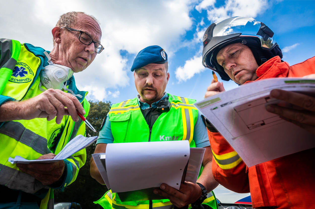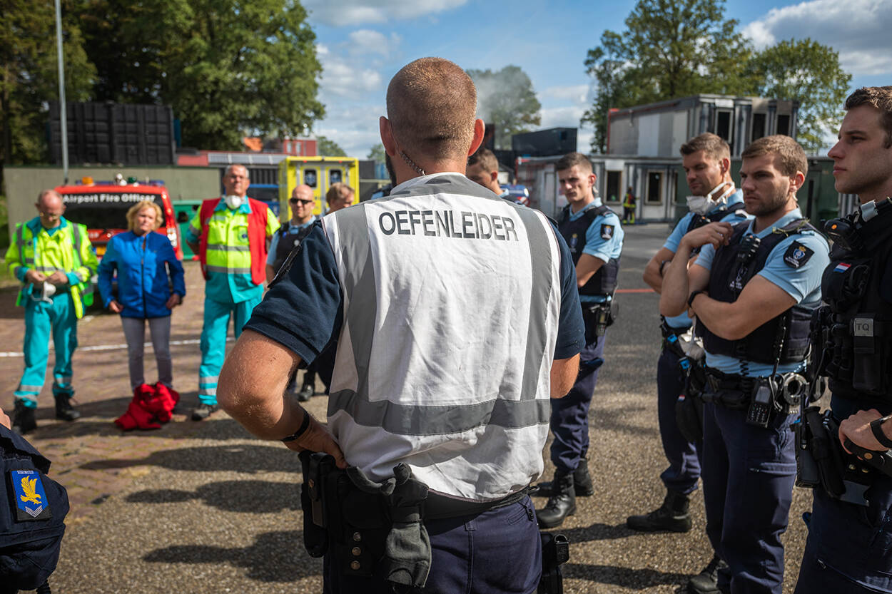 Collega’s van de brigade Politie en Beveiliging nemen momenteel deel aan een serie grote multidisciplinaire oefeningen op de voormalige vliegbasis Twenthe. In 6 sessies van 2 dagen krijgen ze samen met de brandweer en ambulancedienst van luchthaven Schiphol 10 scenario’s voor de kiezen. Gebeurtenissen waarvan je hoopt dat ze nooit zullen plaatsvinden, maar waar je wel op voorbereid moet zijn. Een grote brand, een schietpartij, zelfmoord of een terroristische aanslag, het zijn momenten dat je er moet staan, als het erop aankomt. Als individu, als team en als ketenpartner.