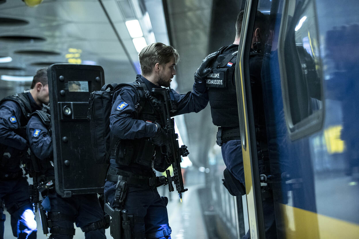 Terwijl marechaussees op het treinstation Schiphol Airport in gesprek zijn met de man op het toilet, klinkt er uit een van de andere treinstellen een luide knal. De situatie verandert direct en de hulp wordt ingeroepen van de mannen en vrouwen van de Gewapende Beveiliging Burgerluchtvaart (GBB).