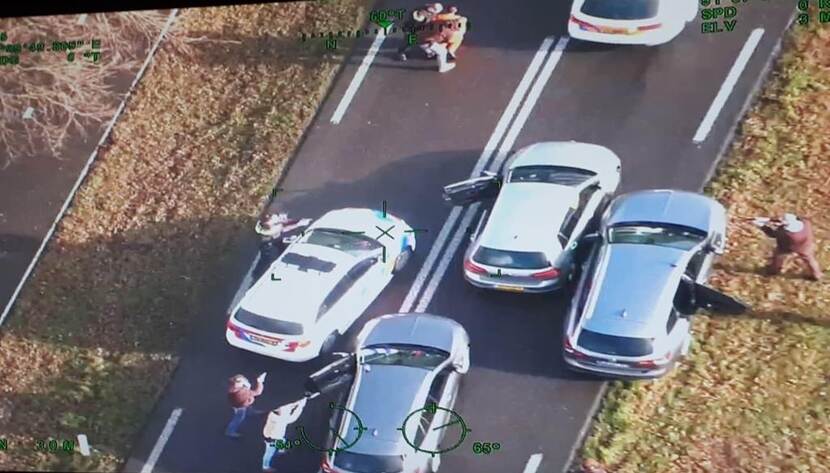 “Tijdens de achtervolging realiseerde ik me dat deze zaak bijzonder was. Ik zag het ook aan de manier waarop ze reden, heel gecontroleerd en beheerst, net als wij, getraind. Toen onze wagen achter het voertuig van de verdachten stopte, had ik mijn gordel al los. Ik dacht: ‘Nu gaat het gebeuren, nu moet je doen wat gedaan moet worden’. Alles ging in slow motion. Ik stond als eerste oog in oog met de verdachten. Ik trok mijn wapen en focuste op hun handen. Die hielden ze gedisciplineerd voor zich. Maar ze reageerden niet op onze aanwijzingen. Een collega loste daarom een waarschuwingsschot. Zelfs van dat schot schrok ik niet. De verdachten werden een voor een de wagen uitgepraat en gecontroleerd. Pas toen de laatste persoon was geboeid en de situatie veilig was, liet ik mijn wapen zakken.”
