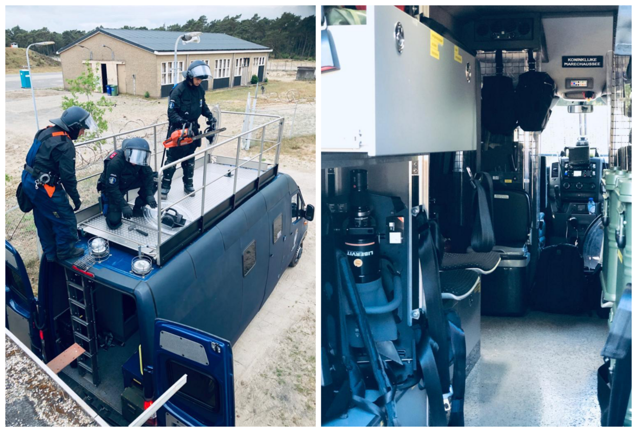 De materiaalbus van de TOG bevat allerlei soorten gereedschap om vastgeketende mensen of andere barricades te verwijderen. (archieffoto’s)