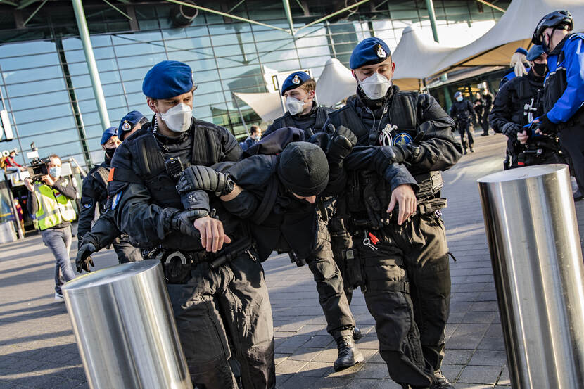 Gaan de demonstranten met jullie in discussie over de lockdown van Schiphol?