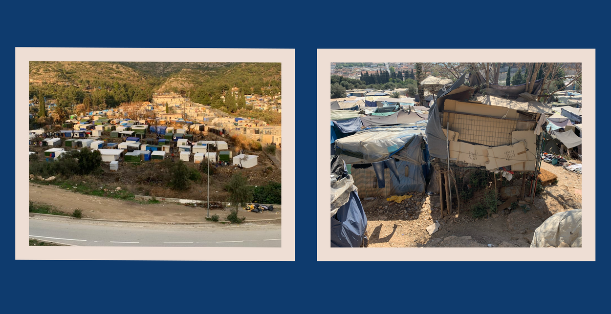 Het opvangkamp Vathy op Samos en de zelfgemaakte woningen waar de mensen in leven.