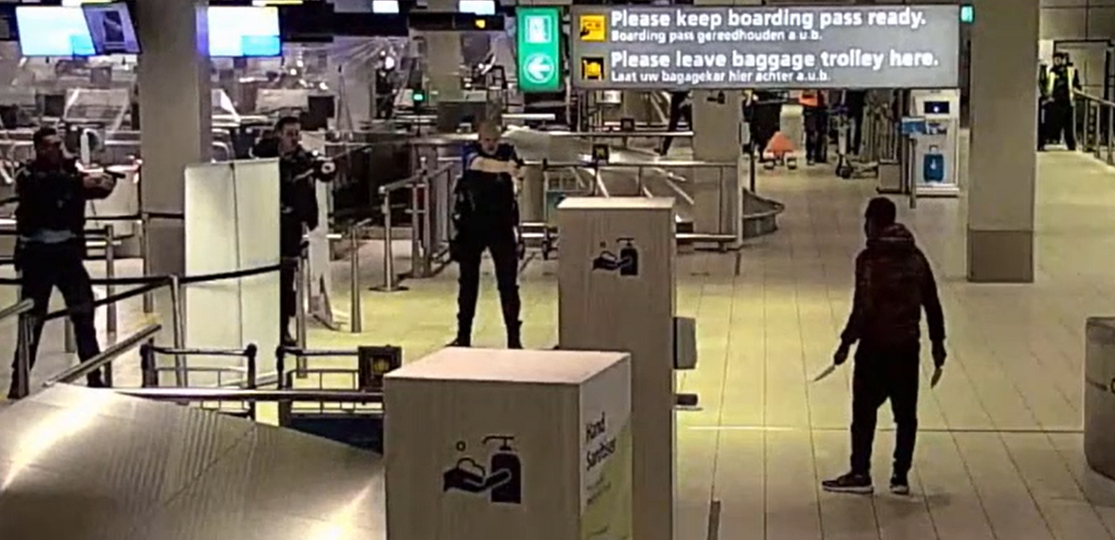 “De man is veroordeeld tot enkele maanden celstraf, die hij al in voorarrest had uitgezeten. Het bleek te gaan om een verwarde man die terug wilde naar zijn land van herkomst, Tanzania. De messen had hij kort voor zijn actie in een winkel gestolen. Hij was ermee naar Schiphol getogen om aandacht te vragen voor zijn zaak. Inmiddels is hij uitgezet naar Tanzania.”