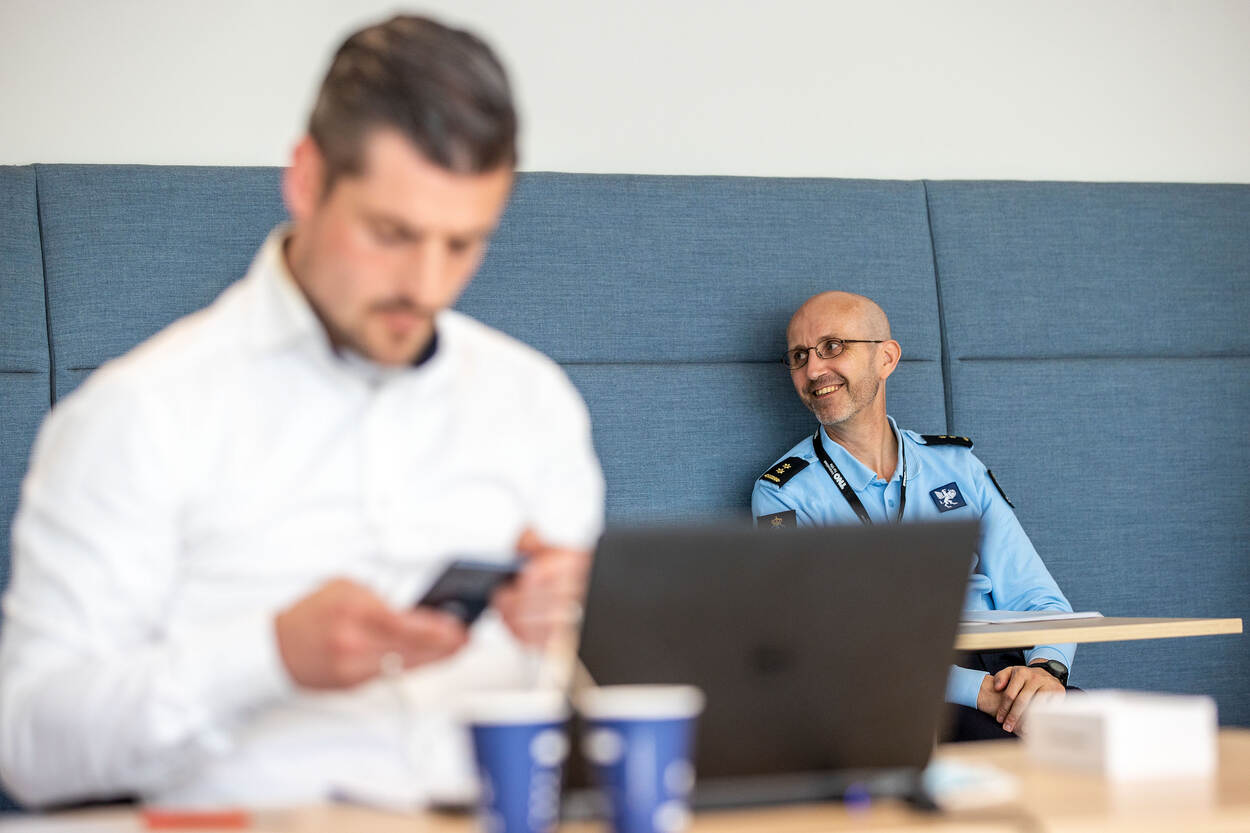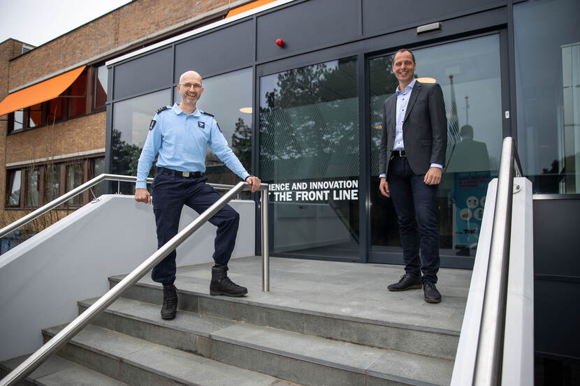 Projectleider luitenant-kolonel Roy Mente binnen de Marechaussee werkt nauw samen met technisch coördinator Jeroen van Rest van TNO.