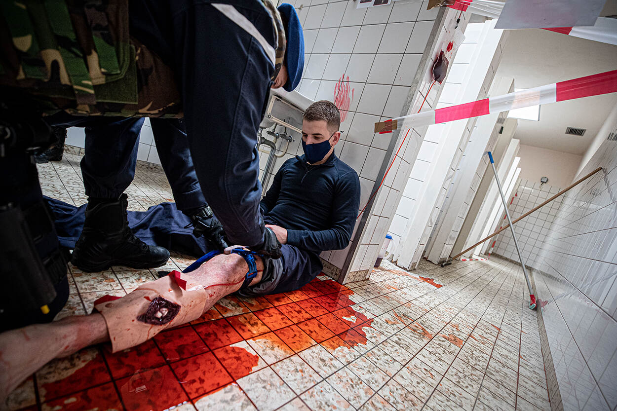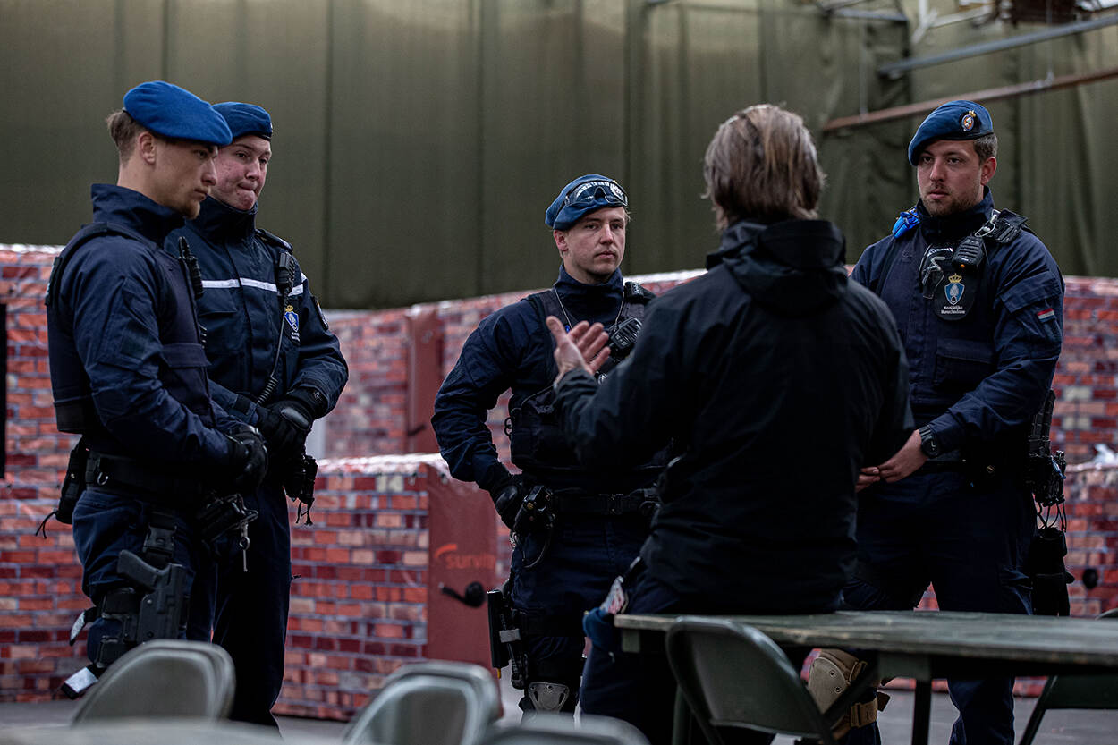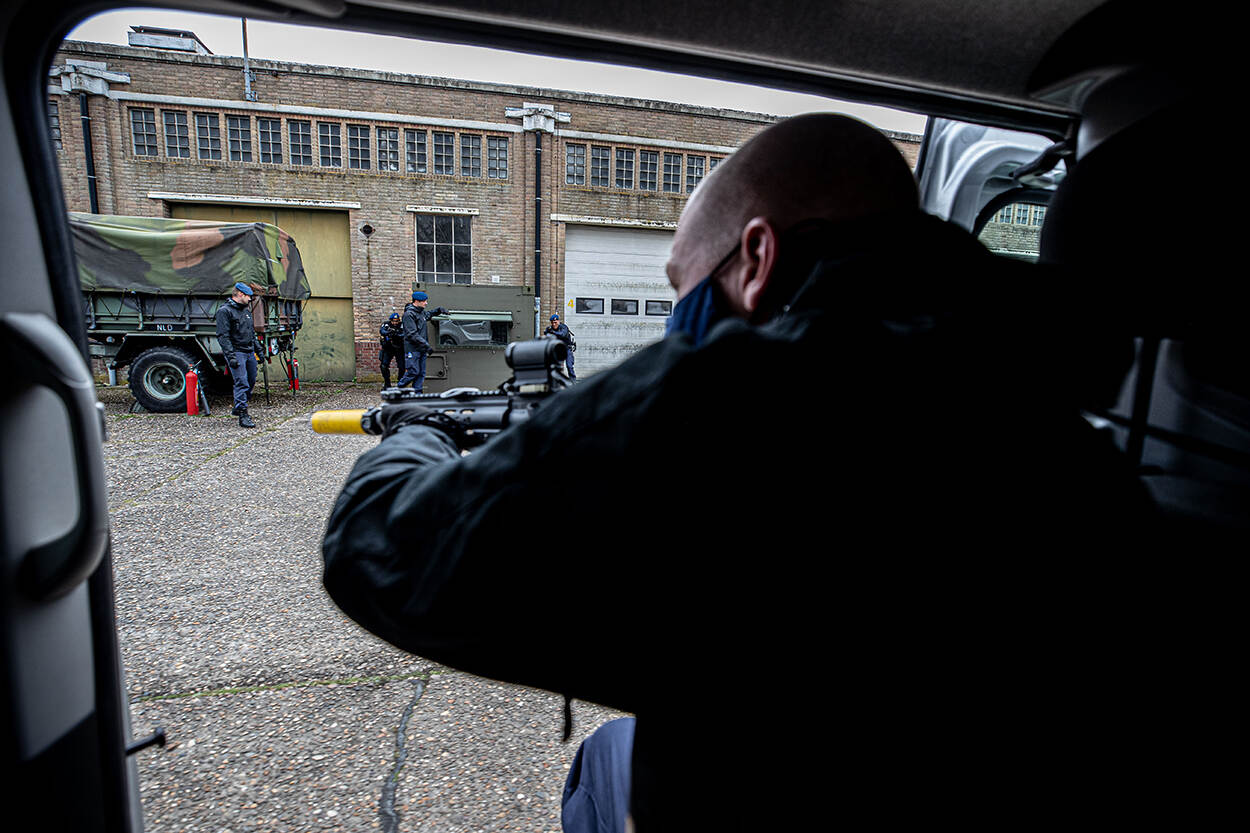 Instructeurs van de sector Vaktechnische Opleidingen van het Opleidings-, Trainings- en Kenniscentrum Koninklijke Marechaussee verzorgen 3 à 4 keer per jaar de opleiding Hoog Risico Operator. Tijdens de opleiding worden de operators ook opgeleid voor de HK416. “Normaal gesproken draaien we de scenario’s op de Harskamp. Maar omdat er vanwege de coronamaatregelen meer vraag is naar trainingslocaties in Nederland zijn wij uitgeweken naar Kamp Nieuw Milligen”, legt adjudant Esther Lobert, instructeur en taakaccenthouder van de opleiding Hoog Risico Operator, uit. “Geen enkel probleem. Sinds kort beschikken we namelijk over inflatable walls. Daarmee kunnen we zelf een oefendorp creëren en realistische situaties in verstedelijkt gebied nabootsen.”