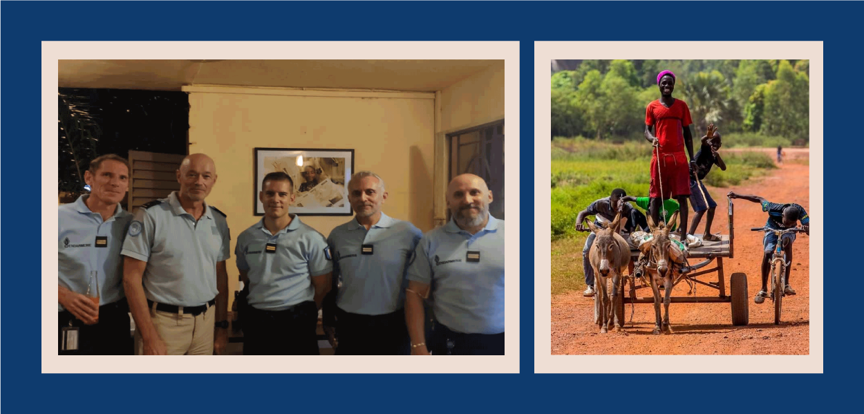 Links: Viering van de Wapendag samen met Franse gendarmerie. | Rechts: Afrika op zijn mooist.