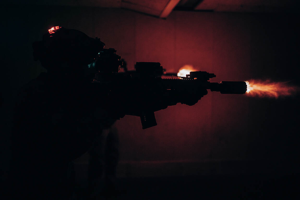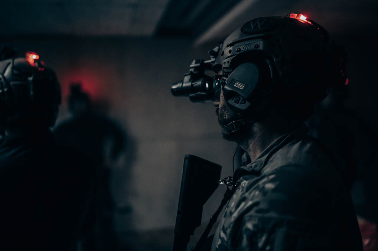 Er is letterlijk licht aan het eind van de tunnel voor collega’s van de Brigade Speciale Beveiligingsopdrachten (BSB). De invoering van Night Vison Goggles moet optreden in duisternis een stuk makkelijker maken. Voor het eerst leren ook BSB’ers in spé al tijdens hun basisopleiding te werken met deze speciale nachtkijkers. KMarMagazine keek mee tijdens een van de trainingen.