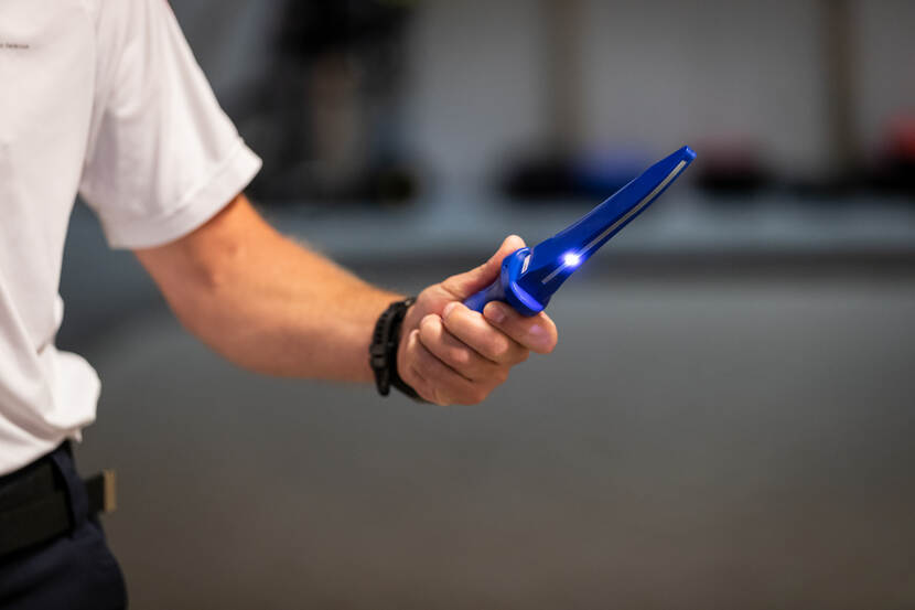 Momenteel worden intern de voorbereidingen getroffen hoe het E-Knife gebruikt moet worden. “Instructeurs kunnen met het E-Knife een meer realistische vorm van stress creëren bij de collega”, legt Van Vliet uit. Dat zorgt er volgens hem voor dat de collega beter gaat nadenken vanuit de doel-aanpak-analyse hoe een benadering moet plaatsvinden. “Als je weet dat er iemand tegenover je staat met een dummy wapen, dan neem je onbewust misschien toch meer risico, vlieg je er sneller in. De collega zal in de uitvoering en beleving van een scenario waarbij een E-Knife wordt gebruikt een betere risicoafweging maken. En ook geen discussie meer of je geraakt bent of niet. Je bereidt de collega’s nu nog beter voor op het echte werk en dat is wat je als IBT-instructeur wil bereiken.”