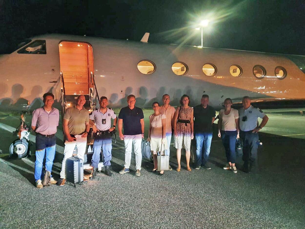 De delegatie, vlak voor vertrek vanaf Sint Maarten.