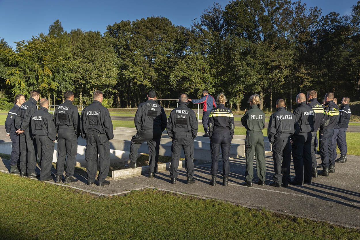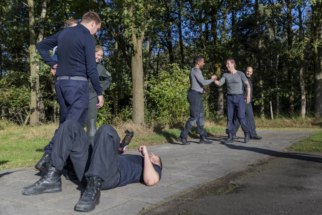 Samen afzien schept een band. Bij een onderlinge wedstrijd komt Bram (KMar) als 1e over de finish. Hij wordt sportief gefeliciteerd door zijn Duitse collega Simon, die als 2e eindigt.