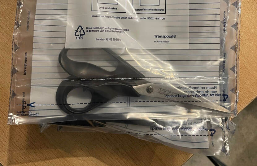 De man haalde een schaar (zie foto) uit zijn jas en met het wapen in zijn hand gaf hij aan dat het om een overval ging.