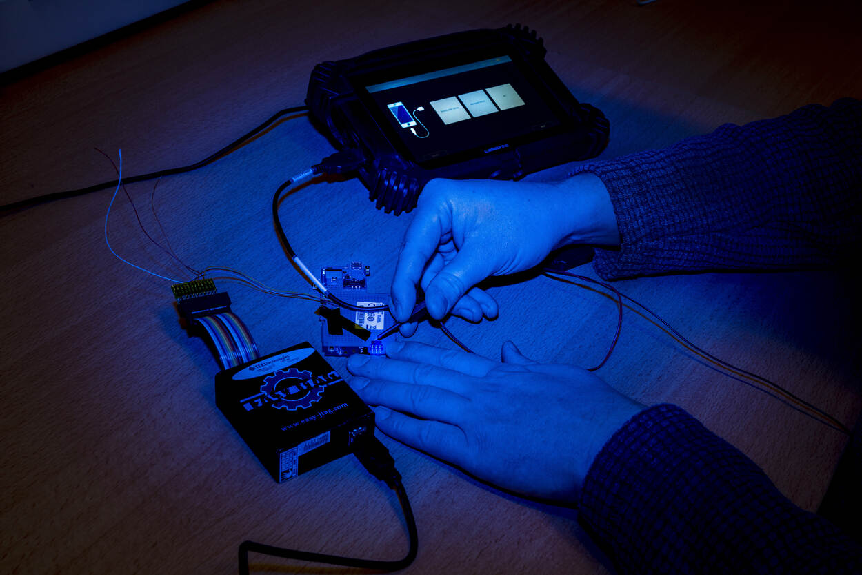 Dat getal representeert het aantal pogingen van het systeem om de toegangscode van de smartphone te kraken. Met wat geluk duurt dit proces een paar weken, soms duurt het binnendringen maanden. Het is een van de bezigheden van het Team Digitale Opsporing (TDO). Waar een forensisch rechercheur zoekt naar bijvoorbeeld DNA-sporen of ballistisch bewijs, gaat dit team de digitale gangen van de verdachte na. Waar je die sporen vindt? “In ieder geval op alles met een stekker”, glimlacht Tom van het TDO.