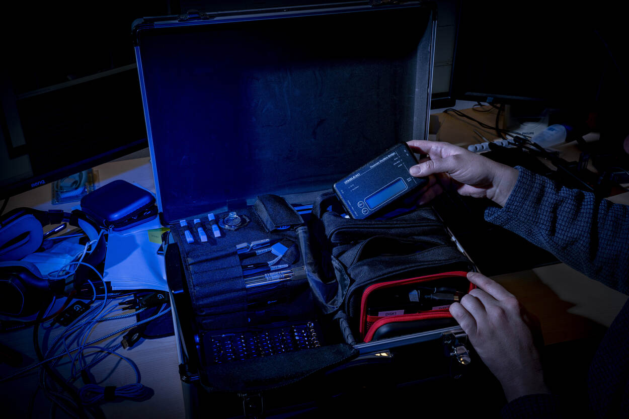 “De recherche ondersteunen in het digitale domein bij het strafrechtelijke onderzoek is onze primaire taak”, vertelt teamleider Gijs. “Conventionele criminaliteit wordt ook steeds digitaler. Tegenwoordig komt het merendeel van de veroordelingen tot stand op basis van digitaal bewijs. Wij helpen de digitale sporen boven water te krijgen.”