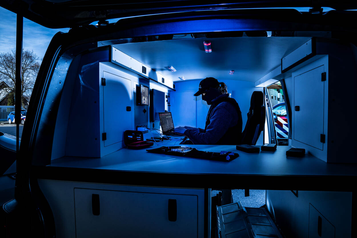 Wie nu denkt dat een digitaal rechercheur enkel naar een scherm staart heeft het mis. “Ik kan mijn baan aan bijna niemand uitleggen. Het is erg leuk en vooral divers”, aldus Tom. Een voorbeeld: “Ik werkte hier pas 4 weken toen ik op pad werd gestuurd om wat onderzoeksmiddelen naar de andere kant van het land te brengen. Onderweg kreeg ik de vraag of ik een zoeking wilde doen. Natuurlijk wilde ik dat! Voor ik het wist stond ik in een wit pak op een plaats delict digitale sporen veilig te stellen.” Heimelijk optreden komt eveneens voor. Dat vertelt Tom achterin de bus die meegaat naar dit soort speciale operaties. “Ons team werkt tijdens dit soort acties regelmatig samen met de Brigade Speciale Beveiligingsopdrachten.”