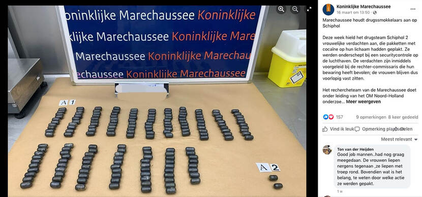 Beide verdachten zitten vast voor verder onderzoek door een rechercheteam van de Marechaussee, dat zich richt op witwassen en criminele geldstromen via Schiphol.