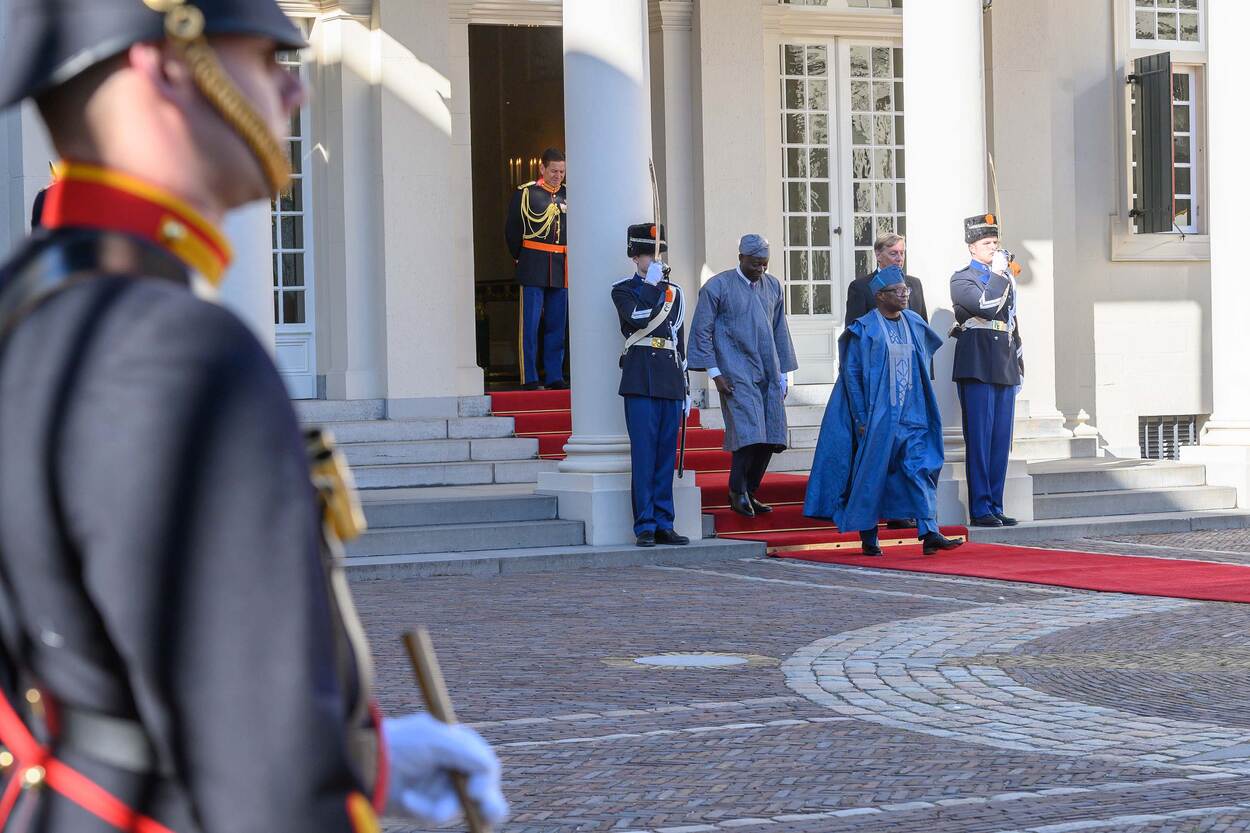 De erewacht wordt op roulatiebasis geleverd door de verschillende krijgsmachtdelen. De Marinierskapel nam dit keer de muzikale omlijsting voor zijn rekening en speelde onder meer de volksliederen van de betreffende landen.