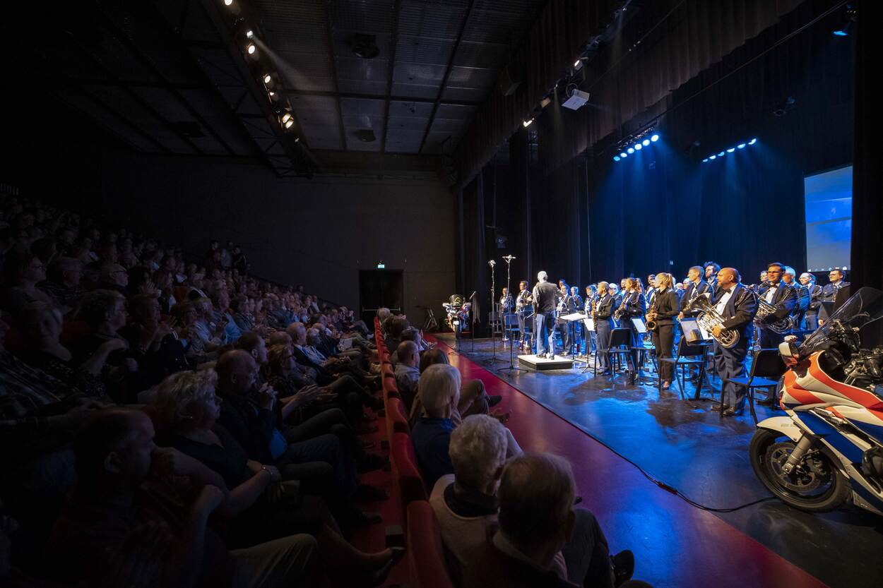 “Zo blij als een kudde jonge koeien en stieren die weer de wei in mag.” Zo omschreef commandant kapitein Dirk Jan Leurink de beleving van de muzikanten tijdens het eerste grote concert van het Orkest Koninklijke Marechaussee sinds de coronacrisis. Het orkest trad 6 mei op in theater Veluvine in Nunspeet voor een volle zaal. In plaats van het in mei 2020 geplande jubileumconcert voor het 70-jarige bestaan, gaf het nu een relatieconcert. Een sfeerimpressie.